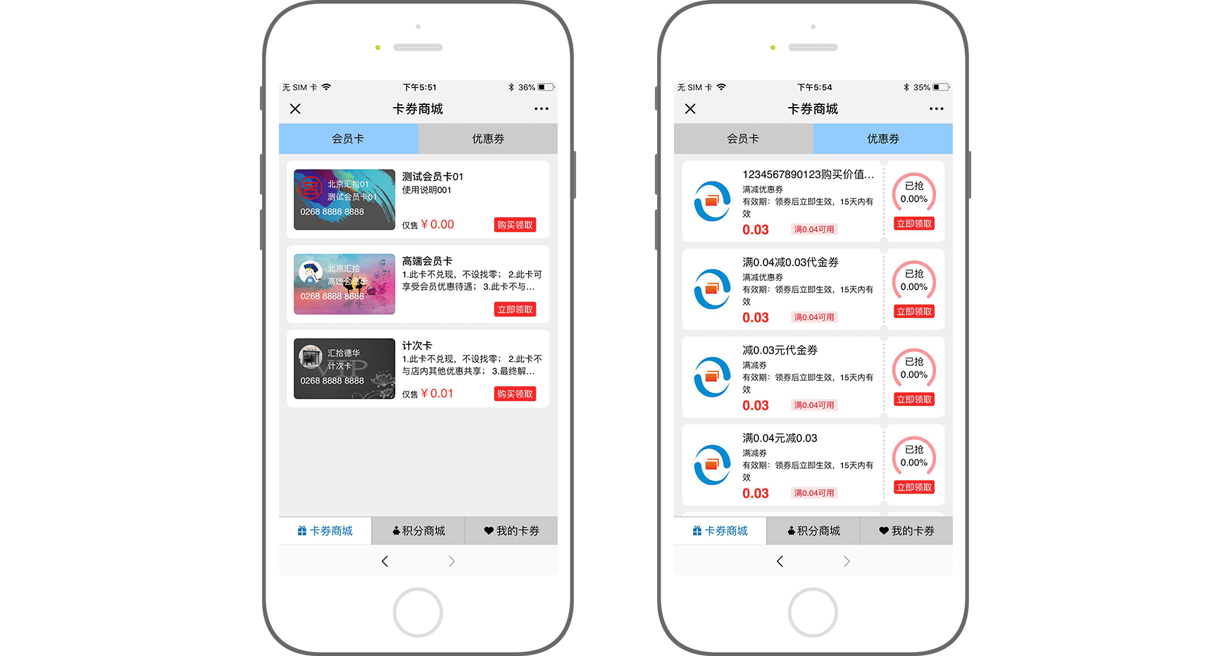 用户可以领取、激活会员卡或者优惠券